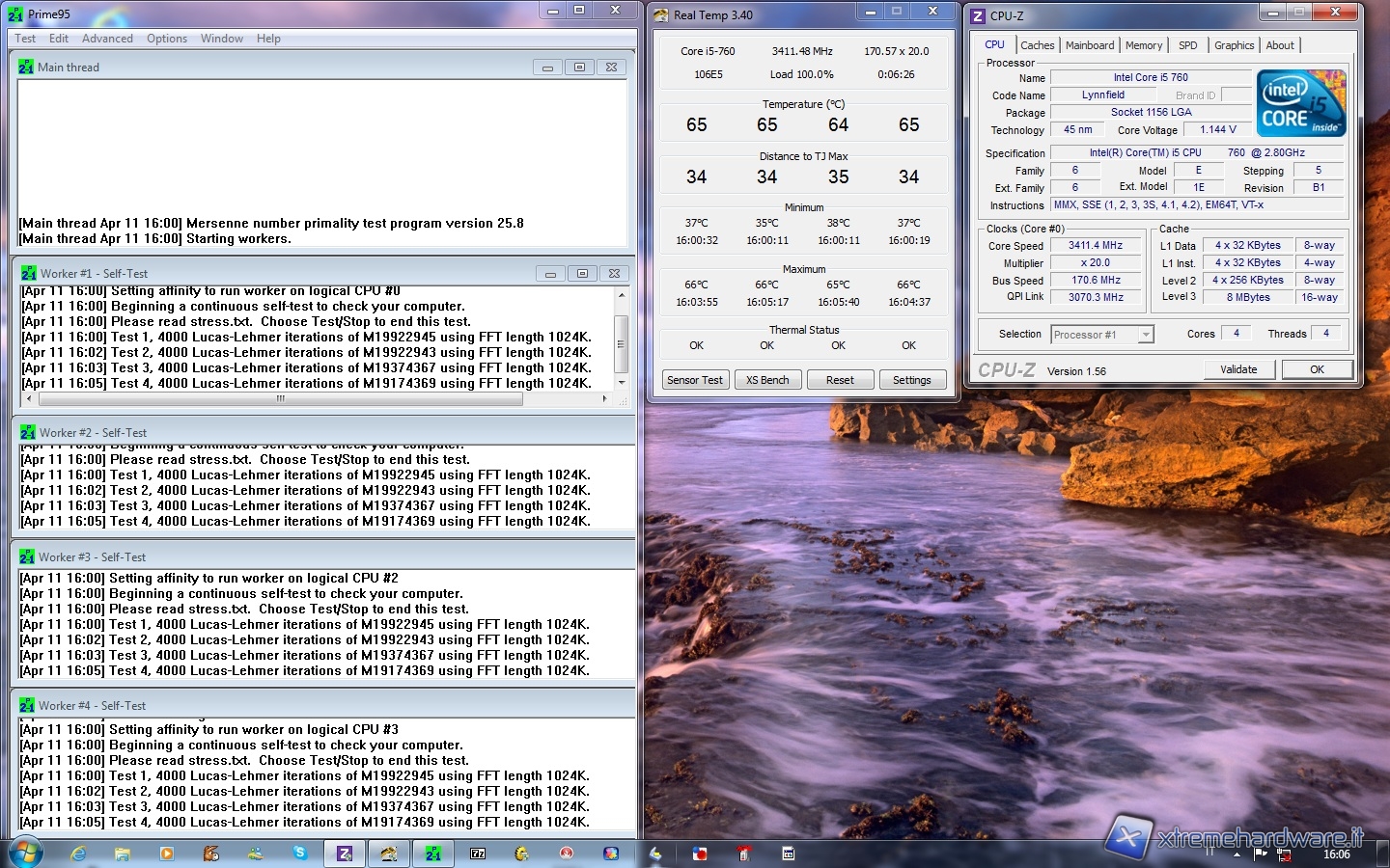 Abbiamo testato il nostro dissipatore con la cpu I5 750 che ha un TDP di 95W e già superiore a quello smaltibile dal dissipatore. Nonostante ciò le temperature ottenute a default sono accettabili, con una media di 56.75°C fra i 4 core in full-load. Effettuando un leggero overclock e passando ai 3.4Ghz notiamo che le temperature crescono di 8°C passando a 64.75°C a pieno carico. Tutto sommato le temperature sono accettabili se si considera che normalmente queste cpu riescono a lavorare anche a temperature di 75/80°C in full-load.
