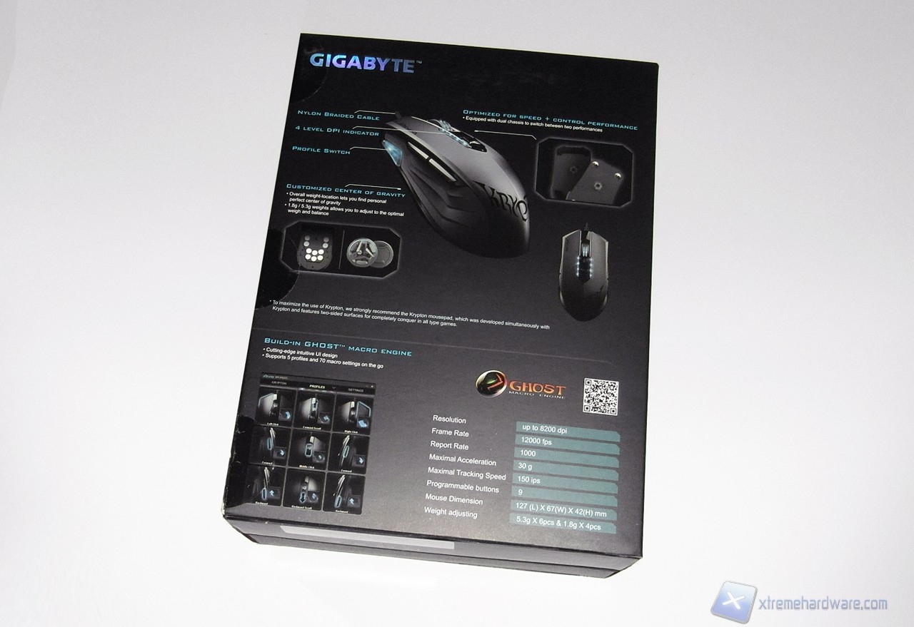 La confezione del Gigabyte Aivia Krypton è decisamente particolare e molto curata: come abbiamo visto nell'unboxing, una parte esterna racchiude quella che è la scatola vera e propria all'interno.