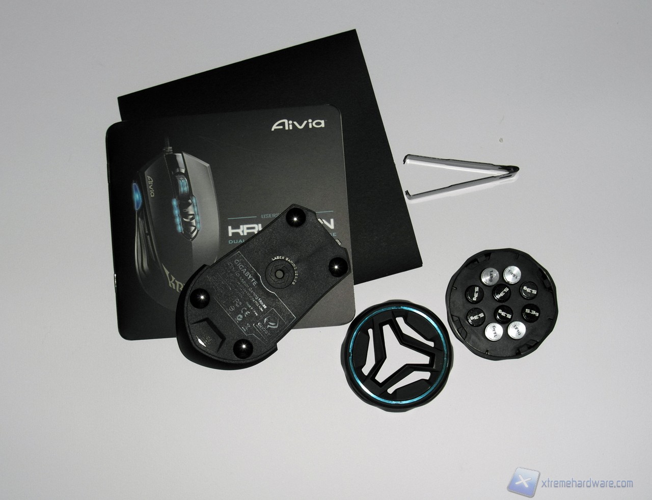 Il bundle, tipicamente quasi assente nei mouse e nelle tastiere, è qui abbastanza corposo. Il contenitore delle massette si apre ruotando le due parti mentre lo strumento metallico permette di rimuovere agevolmente le stesse quando sono inserite nelle sedi.