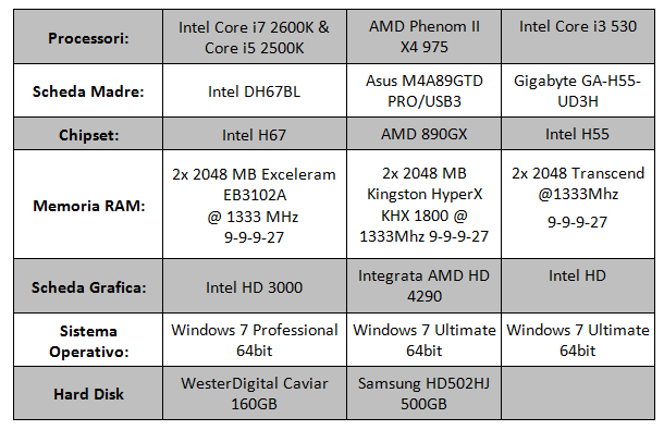 Tutti I test si sono svolti sulle seguenti piattaforme: